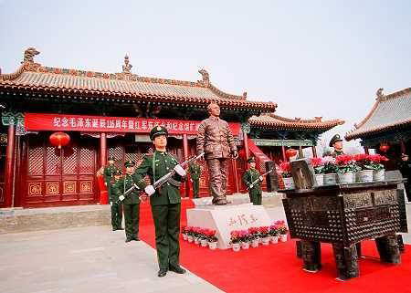 一曲“东方红,太阳升,中国出了个毛泽东,他为人民谋幸福,呼儿嗨哟,他是人民大救星……”歌曲响彻永和大地,12月26日,是中国共产党、中国人民解放军、中华人民共和国的主要缔造者,全国各族人民的伟大领袖毛泽东主席诞辰116周年纪念日。永和县举行红军东征永和纪念馆扩建工程竣工仪式,深切缅怀伟大领袖毛主席。省委党史办主任张铁锁、临汾市领导黄翠莲、梁天运、郑中夏、刘淑芬等市县领导出席竣工剪彩仪式,并先后向毛主席塑像敬献了花篮。当地干部群众、学生代表1000余人参加了剪彩仪式。
