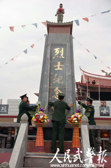 在福建省泉州市崇武镇西沙湾有一座奇特的庙宇,说它奇特是因为里面供奉的不是神灵,而是27尊全副武装的解放军烈士雕像。这所由民间自发建造、被称作"天下第一奇庙"的庙宇,已成为当地一个爱国主义教育基地。近日,武警泉州支队新训大队新战士来到解放军庙深切缅怀革命先烈,向革命烈士敬献了花篮,并在纪念碑前举行了庄严的宣誓活动。